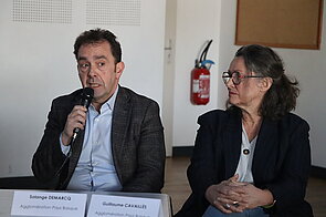 - François Esnault, chargé de mission Environnement au Département 64, et Cyrille Marlin, paysagiste, nous ont ouvert le champ des possibles en matière d'études et de démarches paysagères. Ils nous suggèrent davantage de participation citoyenne pour être au plus près des enjeux socio-économiques de terrain, dont certains sont similaires d'un versant à l'autre.